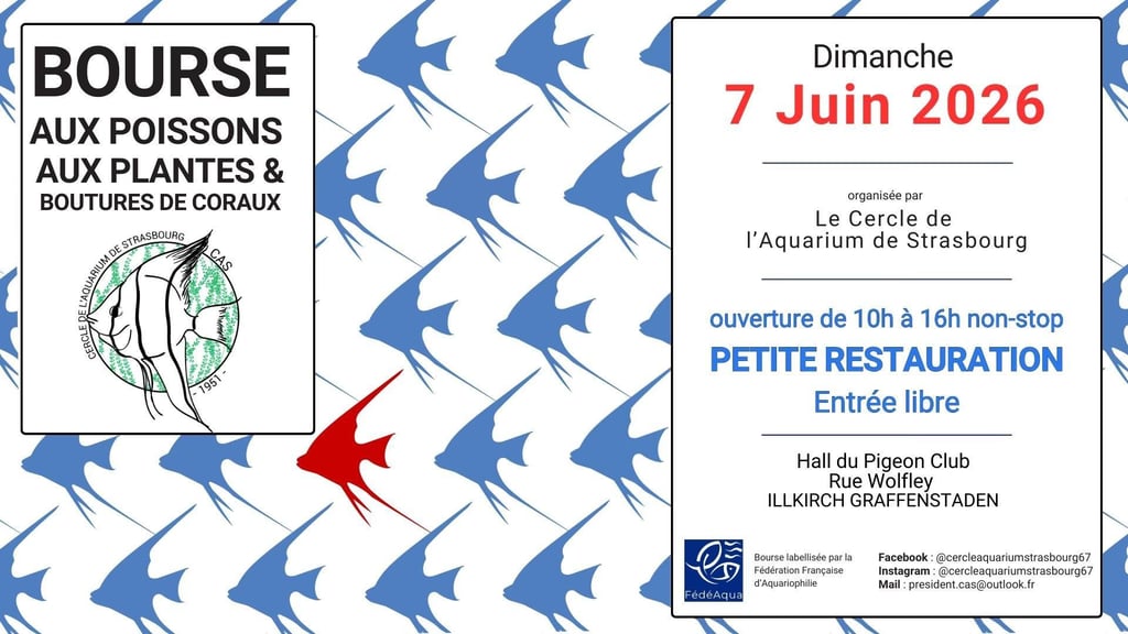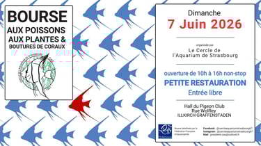 Retrouvez nous le 07/06 à la bourse aux poissons organisée par "Le Cercle de l'Aquarium de Strasbourg" à (67) ILLKIRCH (proche de Strasbourg)